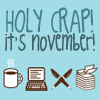 Description: the nano icons (mug, laptop, ...) with the text "Holy crap! it's november"